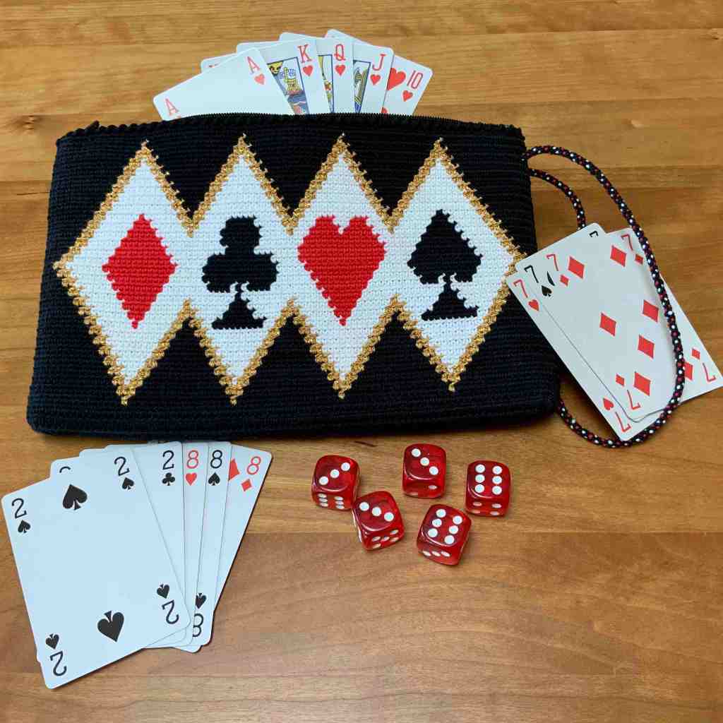 Make a stylish clutch with the Mochila Cards pattern! This project uses the Mochila tapestry crochet technique, working with three yarns at the same time for a firm and sturdy result.