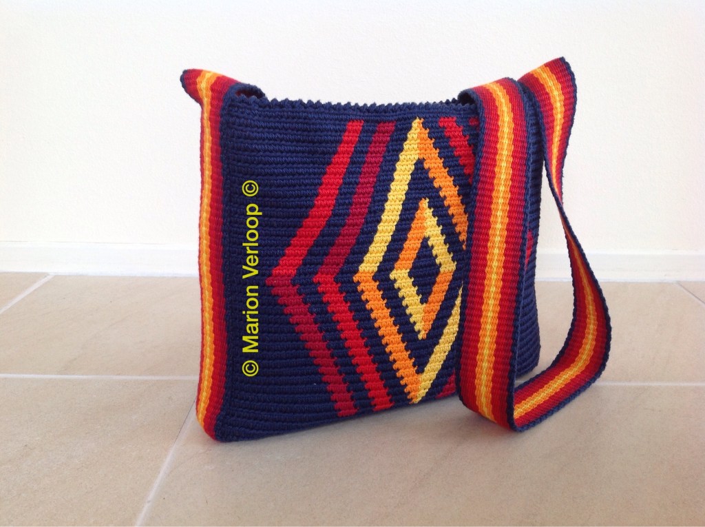 Experience the art of tapestry crochet with the Mochila Ibu pattern! This beautiful bag features striking blue tones and a classic design, making it a stylish and practical accessory for any occasion.